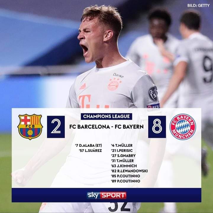Ce fut une véritable démonstration de force et une amusante promenade de santé des bavarois face à des catalans impuissants lors du 3ème quart de finale joué à Lisbonne. Quatre buts en première mi-temps et quatre autres en seconde période. Du jamais vu dans l’histoire de la plus prestigieuse des compétitions européennes. Par cette écrasante victoire , l’équipe allemande lance un sérieux avertissement de redoutable rouleau compresseur aux autres qualifiés au carré d’as. Elle attendra le vainqueur du 4ème quart de finale Manchester City et l’Olympique Lyonnais pour le croiser en demi finale.
