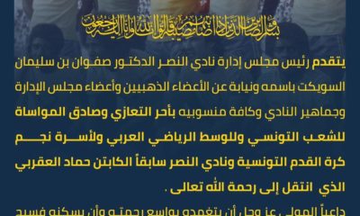 Après la disparition douloureuse du grand artiste du football tunisien Hamadi Agrebi , l’administration du club saoudien » Ennasr » dont le regretté avait porté les...