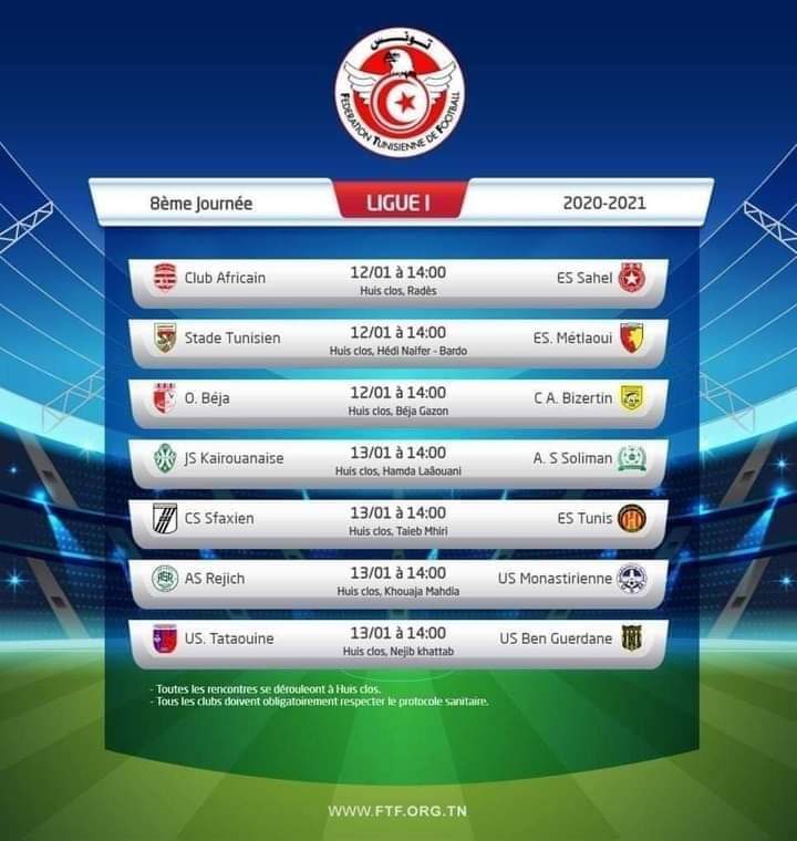 Voici le programme de la huitième journée de la Ligue 1, prévue les 12 et 13 janvier :
