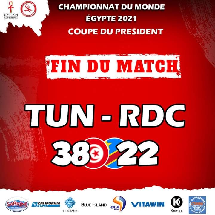 Hand – Mondial – Match de classement : La Tunisie bat la RD Congo (38 – 22)