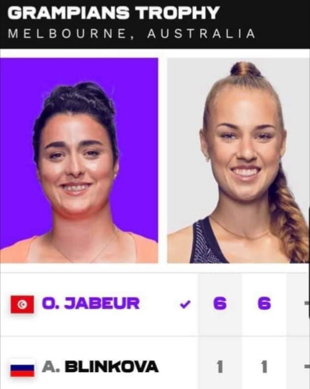 Bon début du tournoi Grampians Trophy (Australie) pour notre championne Ons Jabeur tête de série numéro 11 qui vient de battre au 1er tour la russe Anna Blinkova classée 51ème à la WTA sur le score sans appel de 6/1 6/1 en 54minutes de jeu .