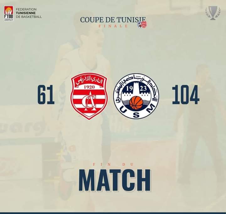 L’Union Sportive Monastirienne a battu le Club Africain 104 à 61, lors de la finale de la Coupe de Tunisie de Basket-ball , disputée samedi après-midi à la salle Bejaoui de Sfax.