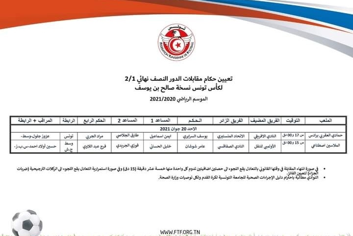 Voici la désignation des arbitres des demi-finales de la Coupe de Tunisie de Football :