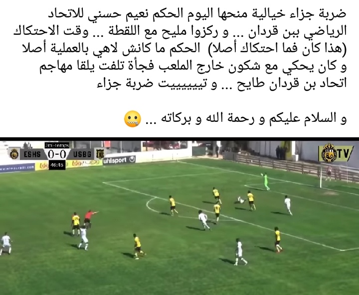 Naim Hosni comme prévu a offert un penalty à Ben Guerdane synonyme de victoire face à l’ES Hammam Sousse. Mission accompli donc et comme prévu, l’US Ben Guerdane est presque qualifiée aux play-off avec une infinité de cadeaux des hommes censés donner ce que de droit à toutes les équipes sur le même pied d’égalité.