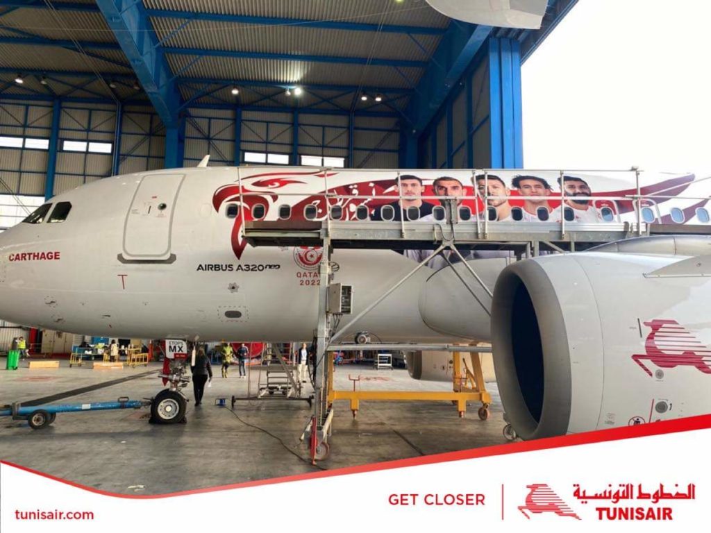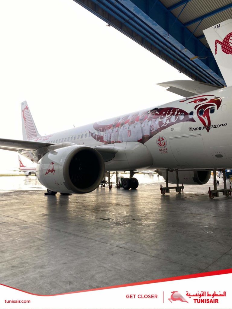 Partenaire officiel de la Fédération Tunisienne de Football (FTF), Tunisair s’est mis aux couleurs du Mondial Qatar 2022, en habillant un de ses airbus l’A320Neo aux couleurs des photos des « Aigles de Carthage ».