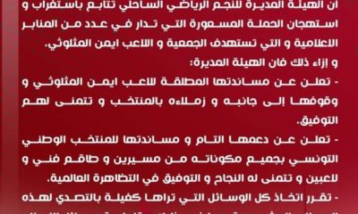 Dans un communiqué publié mardi, le BD de L’Etoile Sportive du Sahel a dénoncé la compagne médiatique à l’encontre de la sélection de son gardien Aymen...