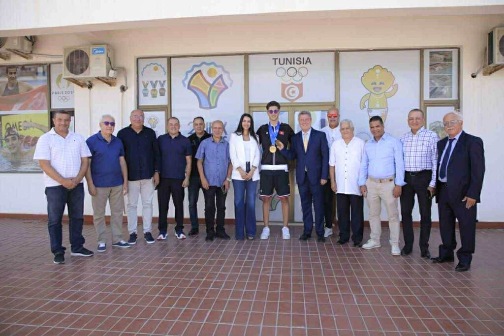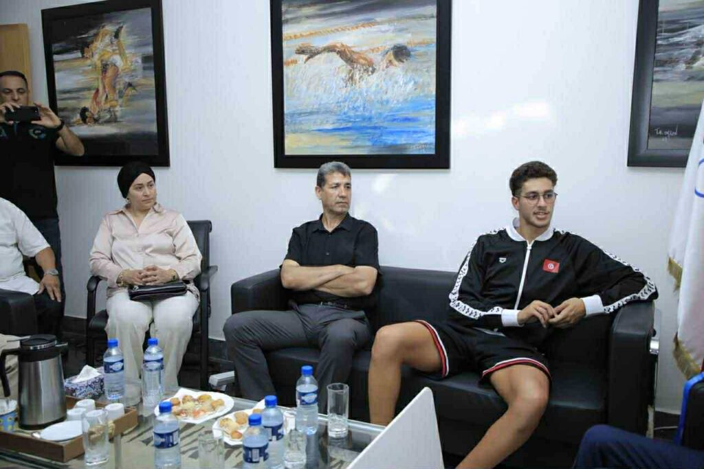 Le champion a été accueilli par M. Mehrez Boussayene, membre du Comité International Olympique et président du Comité National Olympique Tunisien, qui lui a exprimé la fierté de la famille sportive et olympique tunisienne. Il a renouvelé les félicitations du comité et salué le dévouement du champion à défendre les couleurs nationales, ainsi que la qualité de sa gestion de carrière, notamment grâce à un suivi scientifique avancé assuré par une équipe de compétences tunisiennes résidant à l’étranger, en collaboration avec l’entraîneur de renommée mondiale Philippe Lucas.