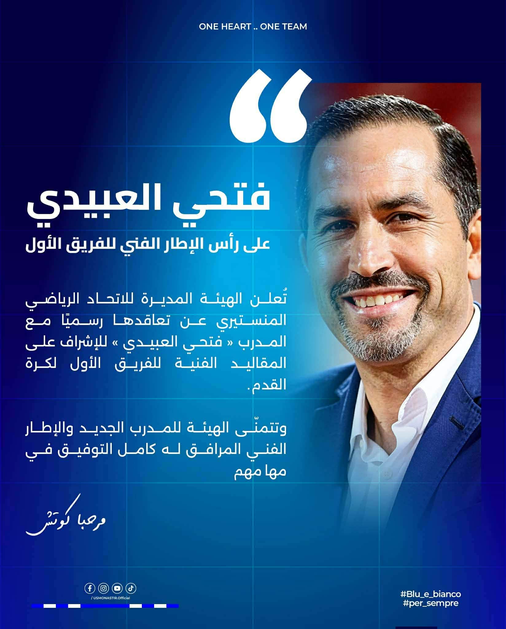 L’Union Sportive Monastirienne a annoncé la nomination de l’entraîneur tunisien Fathi Laabidi comme nouveau coach de l’équipe première, dans le but d’insuffler une nouvelle dynamique au parcours sportif du club. Laabidi est considéré comme l’un des entraîneurs expérimentés du football tunisien. Il a déjà dirigé plusieurs clubs, notamment le Club Sportif de Hammam-Lif, le Club Africain et l’Espoir Sportif de Hammam Sousse, en plus de certaines expériences d’entraînement dans des clubs du Golfe. Reconnu pour sa vision tactique solide et son approche professionnelle, il suscite l’espoir des supporters monastiriens de voir l’équipe réaliser de bons résultats et consolider sa place dans les compétitions nationales.